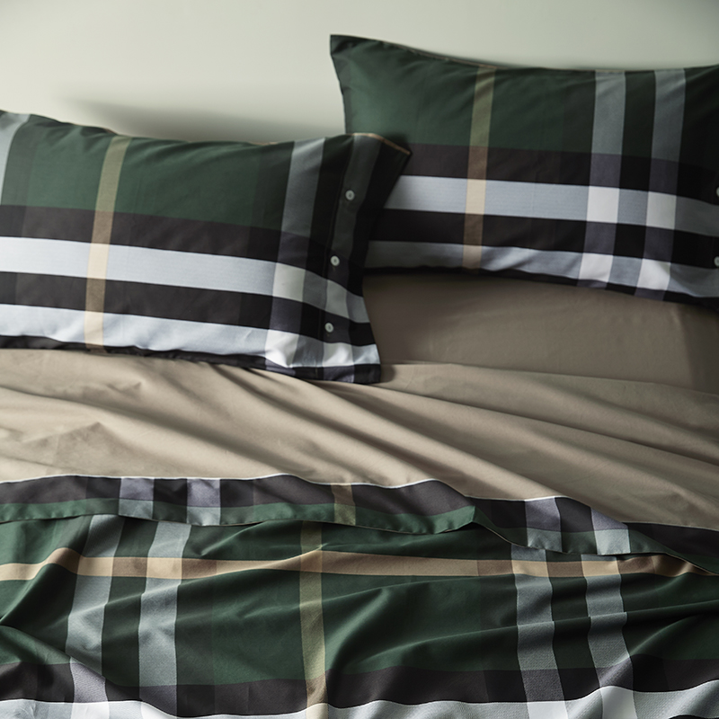 / 春夏上新!歐美北歐簡約男士女士長絨棉墨綠方格貢緞床上四件套