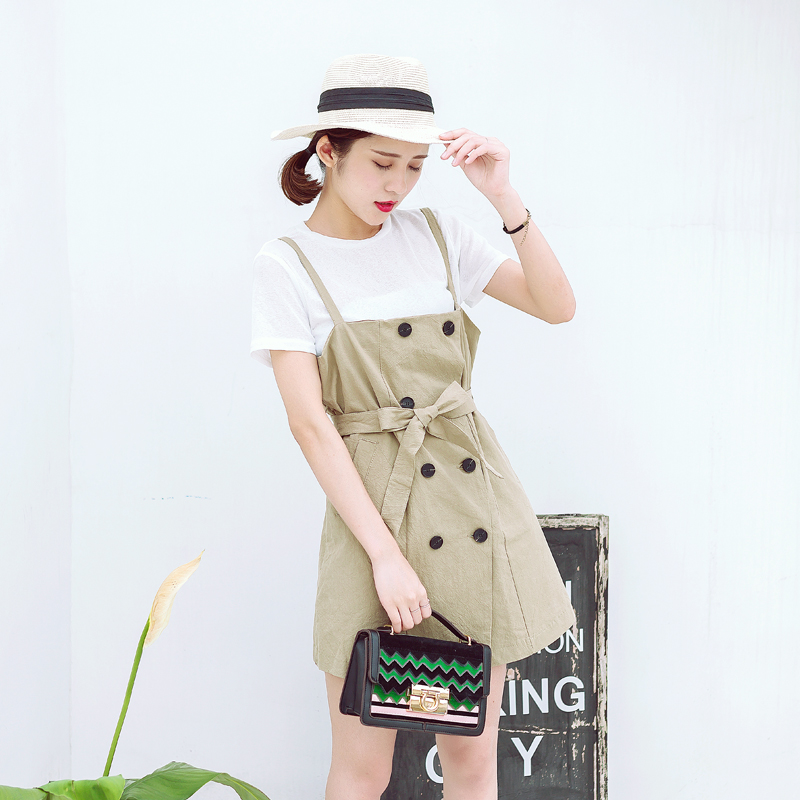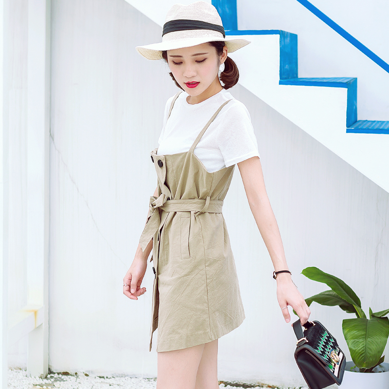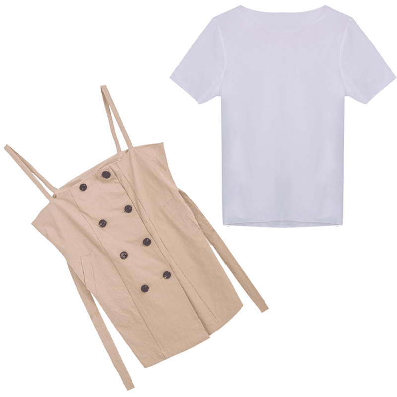 純色T恤+吊帶裙的兩件套,相信這是你們日常中少不了的一套
