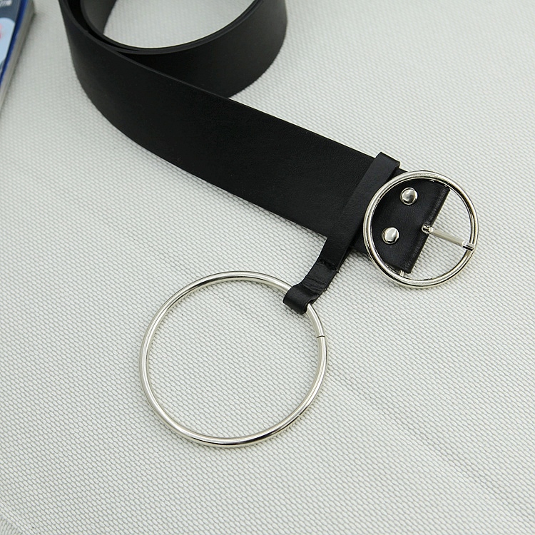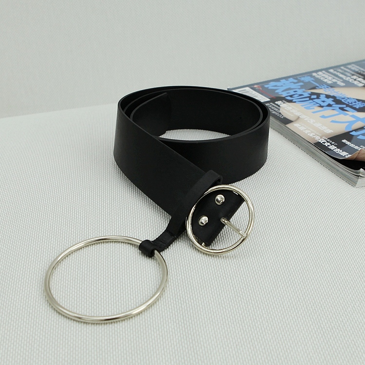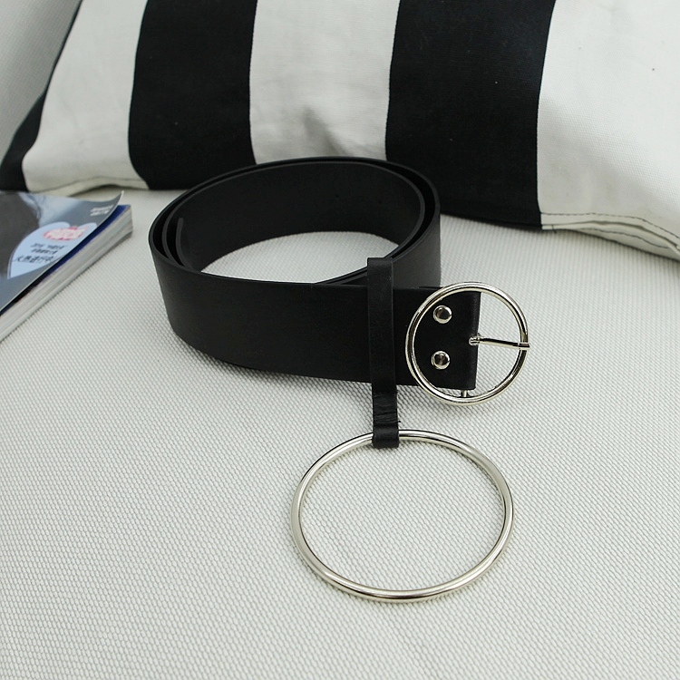 / 韓版新款學生銀色大環圈皮帶簡約休閑百搭防水圓扣腰帶褲帶女