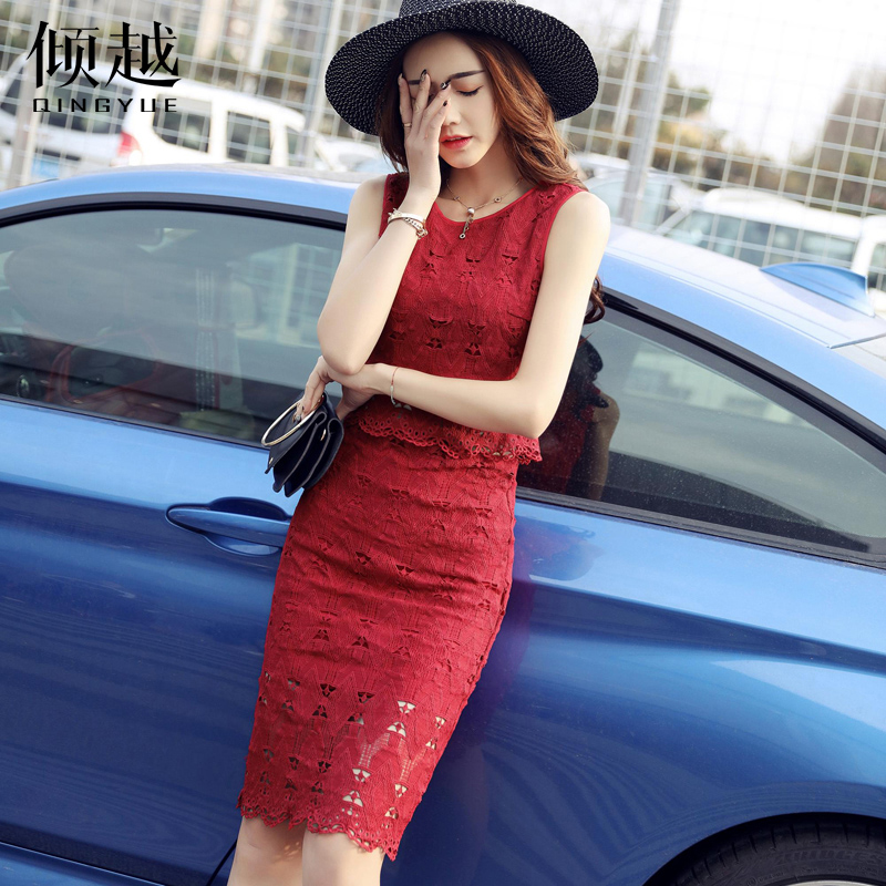 / 蕾絲連衣裙潮2017夏季新款韓版女裝無袖包臀時尚套裝裙休閑兩件套