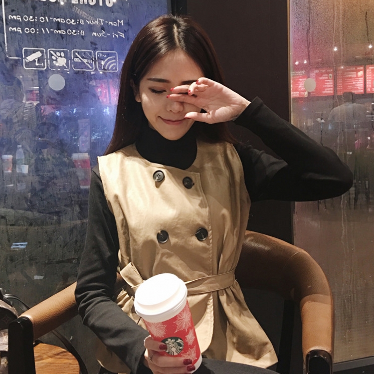 / 秋冬款韓國chic四粒扣pu皮馬甲小背心+加厚高領打底衫套裝女