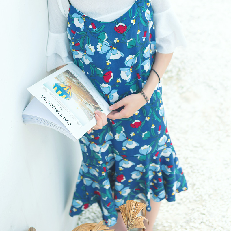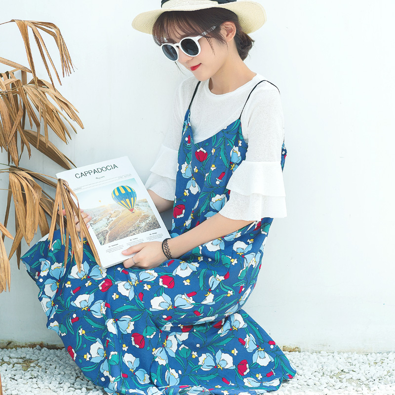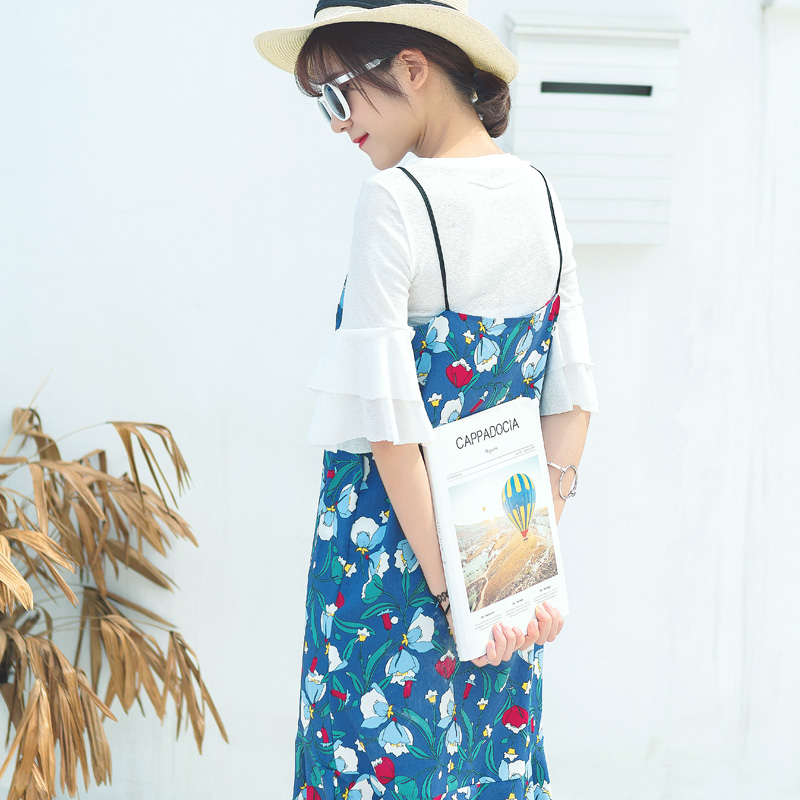 / 連衣裙女夏裝夏季喇叭袖套裝吊帶中長款學生兩件套雪紡裙子潮