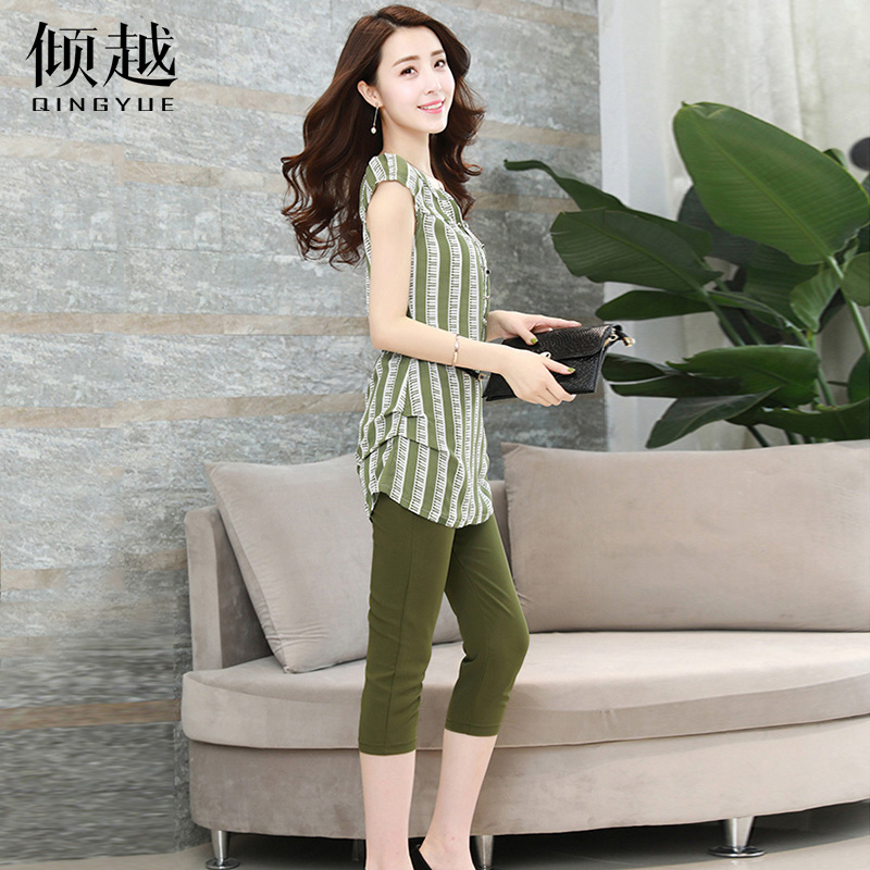 傾越時尚套裝女夏季七分褲2017夏裝新款女裝韓版氣質職業兩件套潮