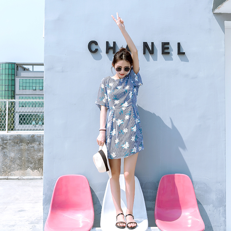 / 夏季新款韓版女裝雪紡印花連衣裙小清新學生中長款短袖裙子潮