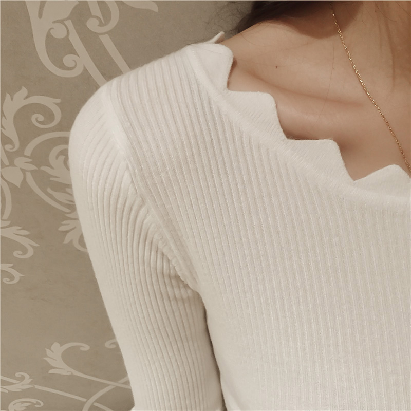 / 秋季新款韓版純色修身顯瘦上衣花邊圓領套頭長袖打底針織衫女