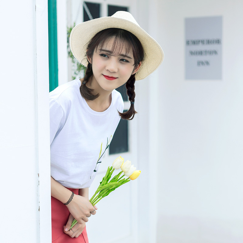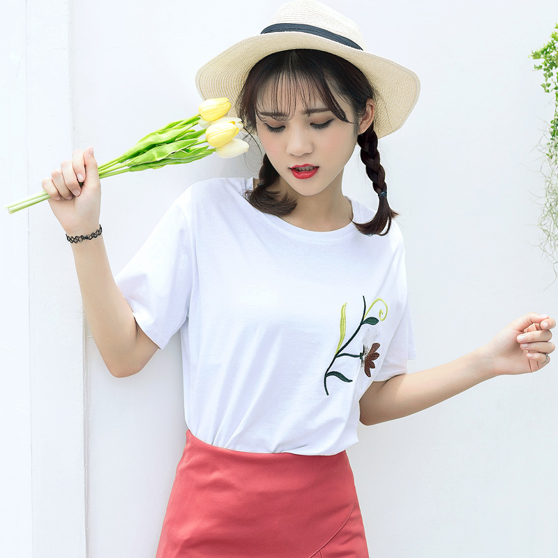 簡約大方的款式,胸前小清新的花朵精美的刺繡在棉質布上