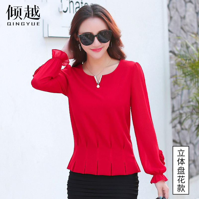 2017春裝新款蕾絲拼接鏤空上衣女衫百搭長袖雪紡衫女修身打底小衫