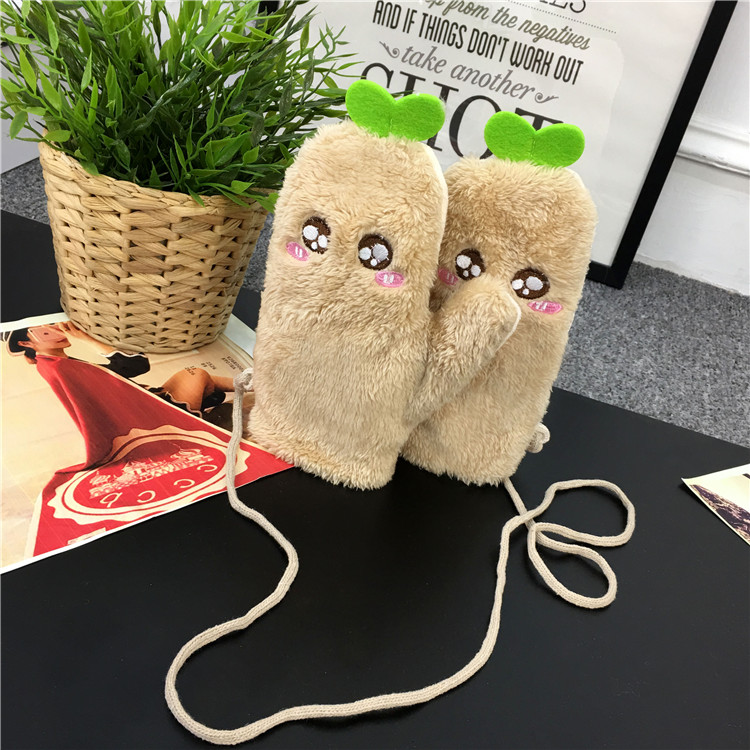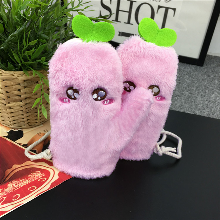 / 冬季韓版可愛萌萌噠保暖卡通布藝全指連指學生掛脖毛絨手套女