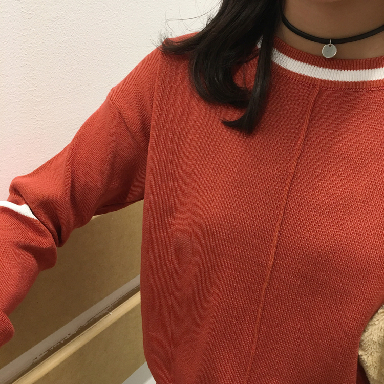 / 韓國學院風秋冬款撞色圓領線條寬松套頭長袖打底衫針織衫女