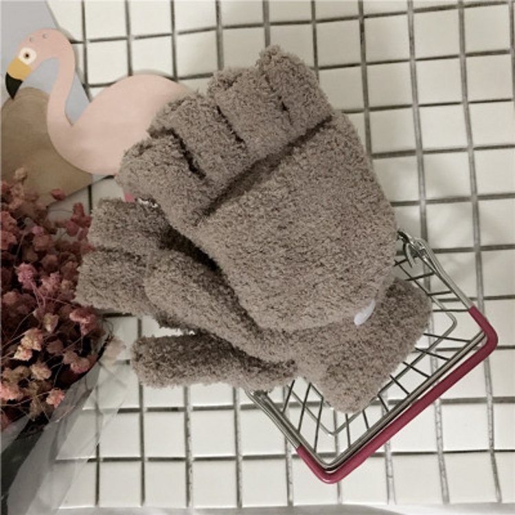 / 秋冬韓版軟綿綿露半指翻蓋兩用學生騎車全指保暖手套男女潮