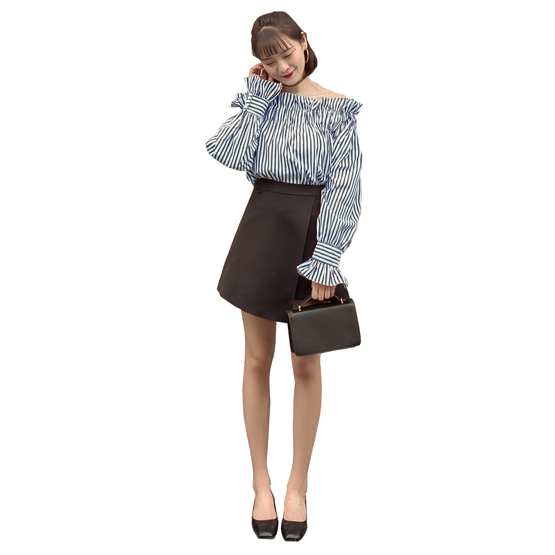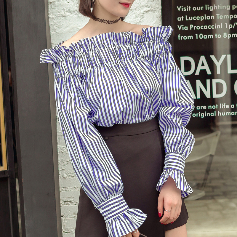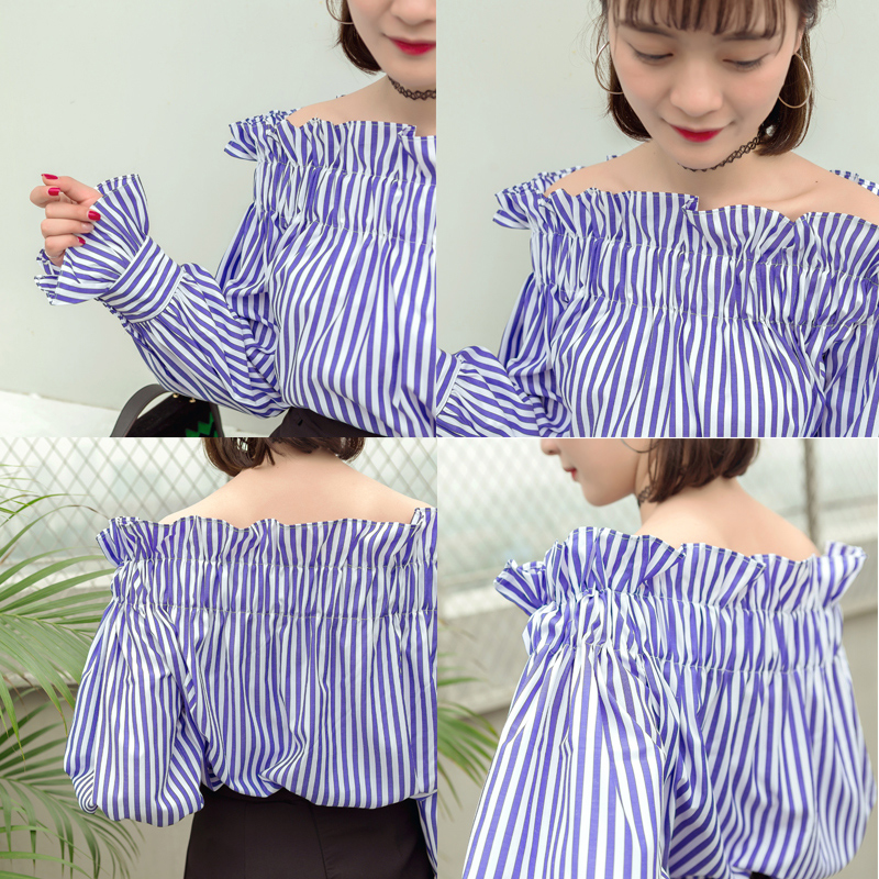超顯瘦松緊木耳花邊一字肩領口小露性感