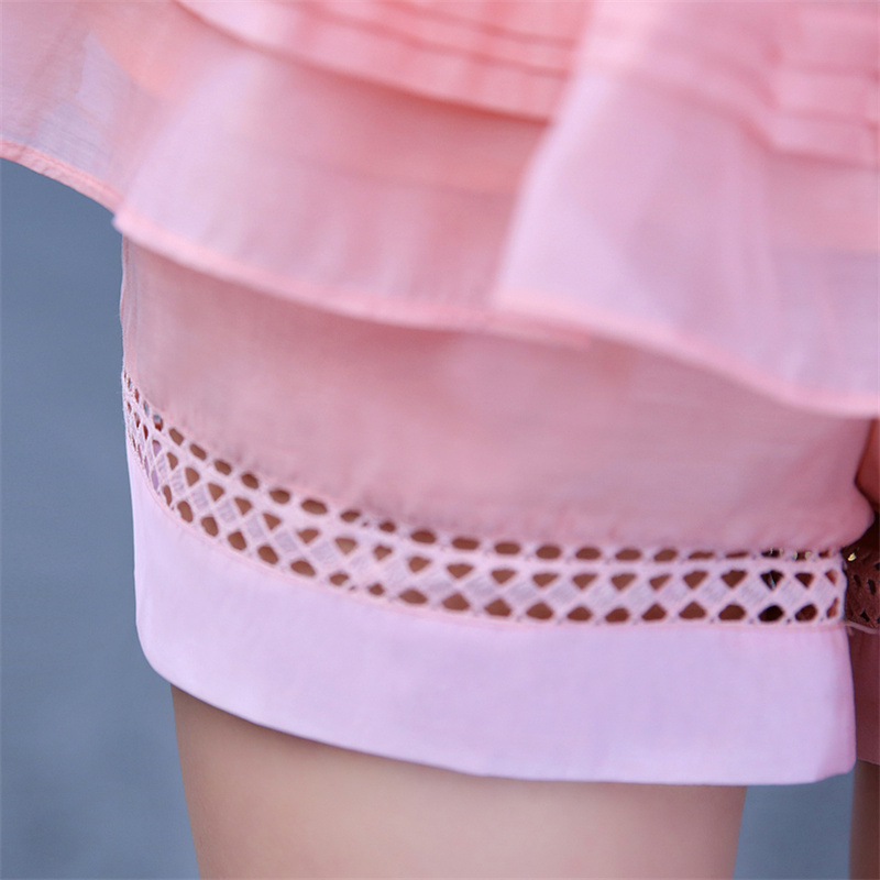 / 夏裝女套裝2017新款休閑兩件套蕾絲衫短袖上衣雪紡衫女短褲套裝女