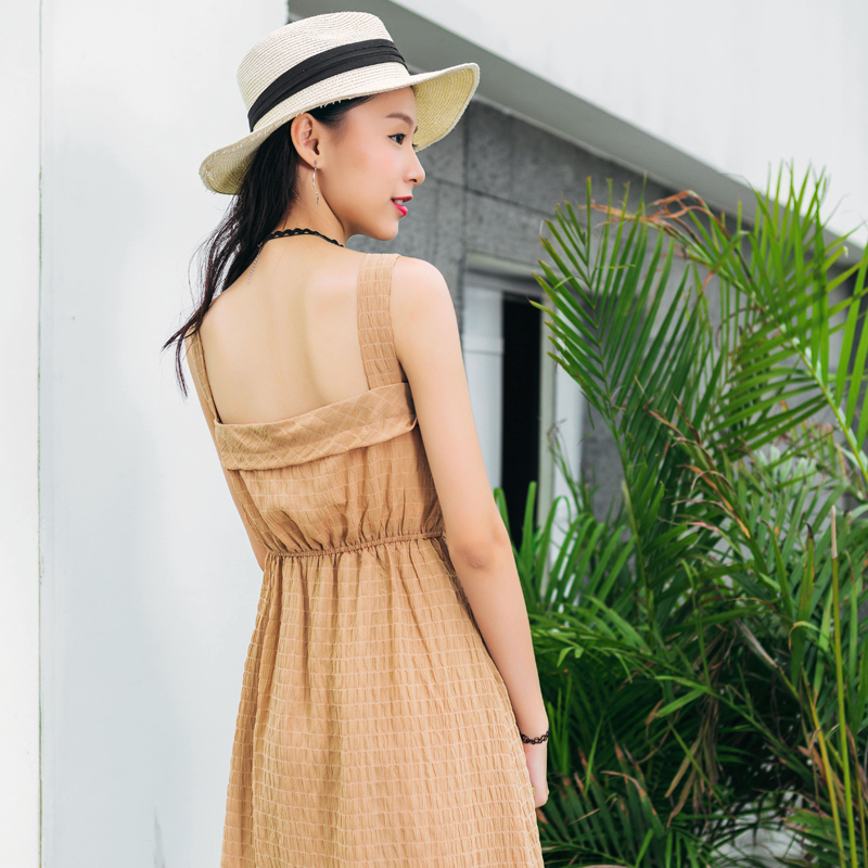 吊帶抹胸式的領口,露出性感的鎖骨領口