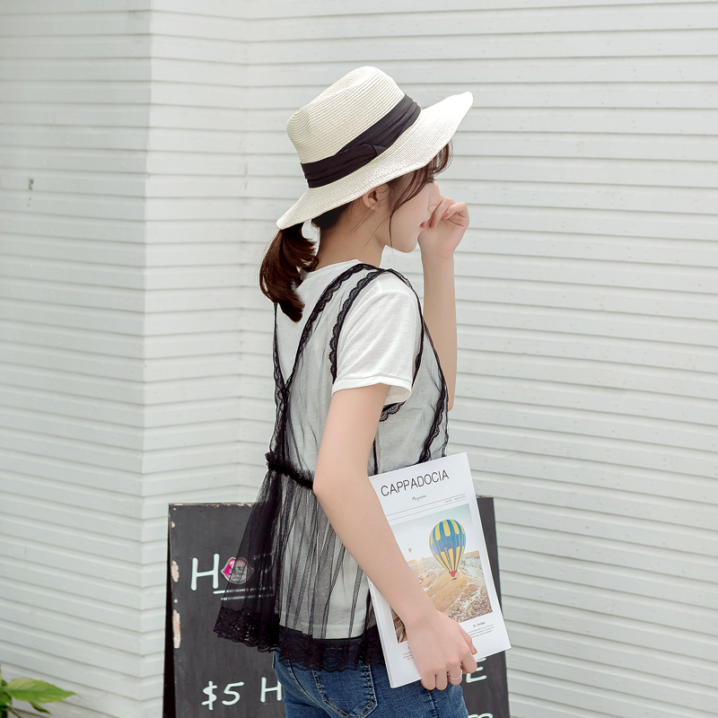 / 夏裝新款女裝韓版百搭兩件短袖t恤蕾絲吊帶打底衫圓領上衣潮
