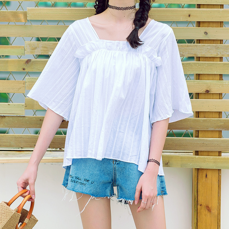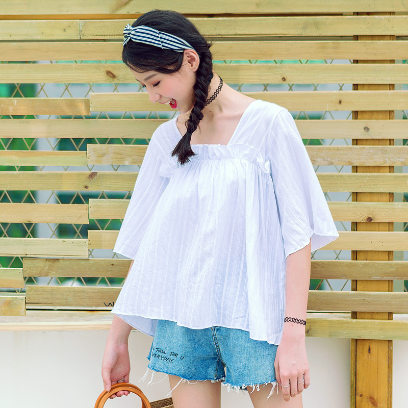 方領的設計,很顯瘦,木耳邊的修飾,更增添了可愛的氣息