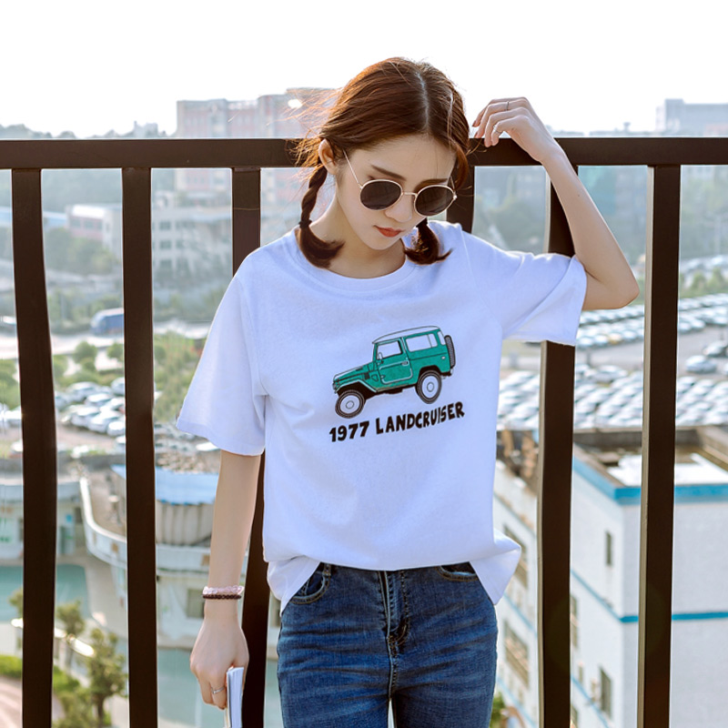 夏裝新款女裝韓版白色百搭t恤寬松印花學生短袖上衣體恤女潮