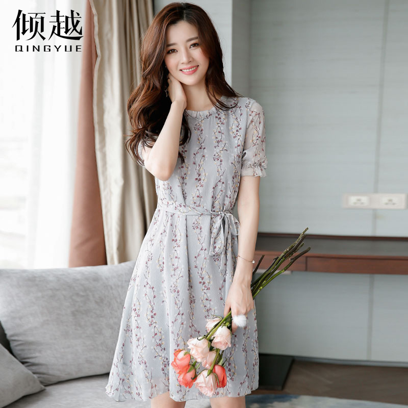 / 雪紡連衣裙韓版中長款2017新款夏季短袖收腰顯瘦碎花裙子氣質中裙