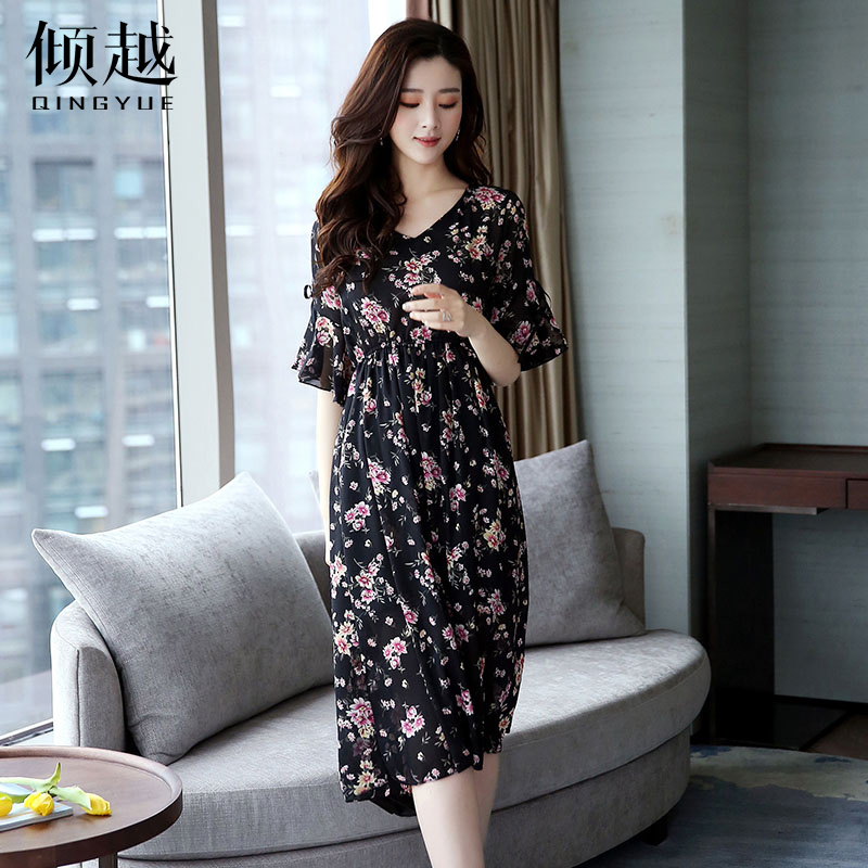 連衣裙女夏2017新款氣質淑女顯瘦百搭修身甜美雪紡短袖荷葉邊裙子