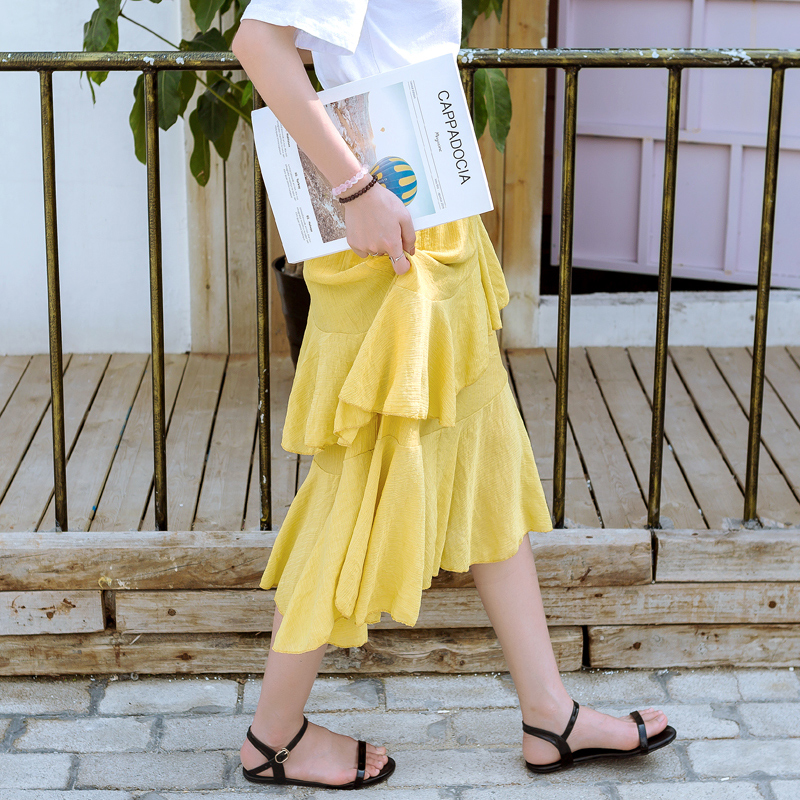 / Caqa/珂奇春夏新款韓國中長款半身蛋糕裙雪紡蓬蓬裙長裙高腰