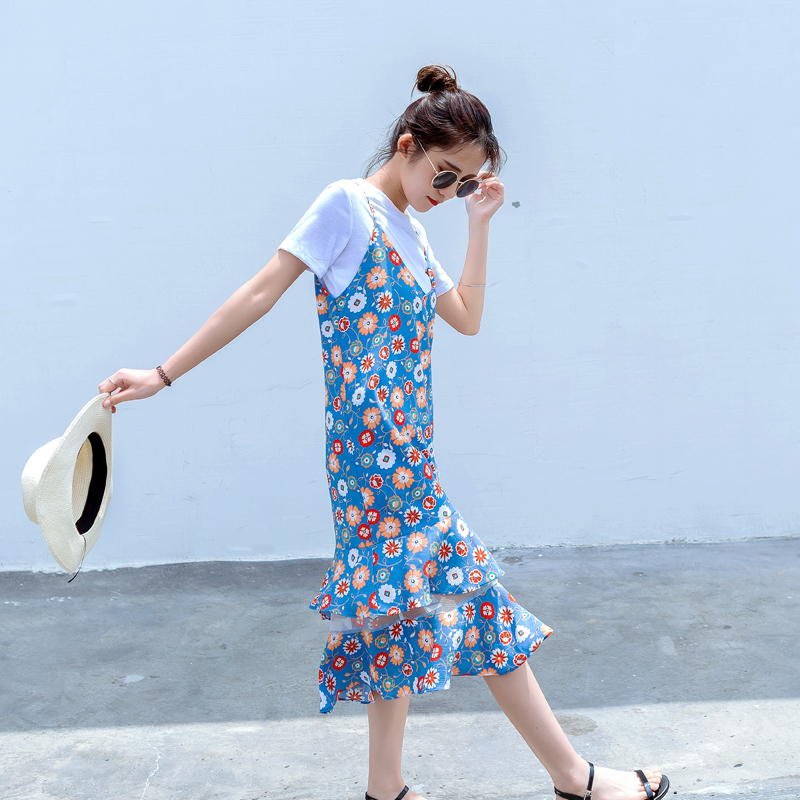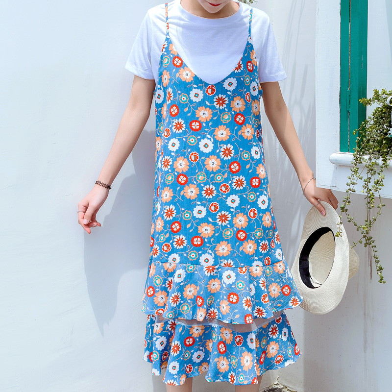 層疊荷葉邊樣式的裙擺,行走時露出小腿