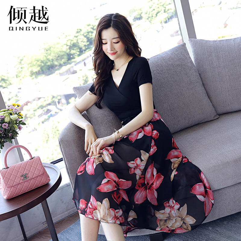 / 時髦套裝女2017夏裝新款雪紡修身裙子兩件套女洋氣收腰顯瘦連衣裙