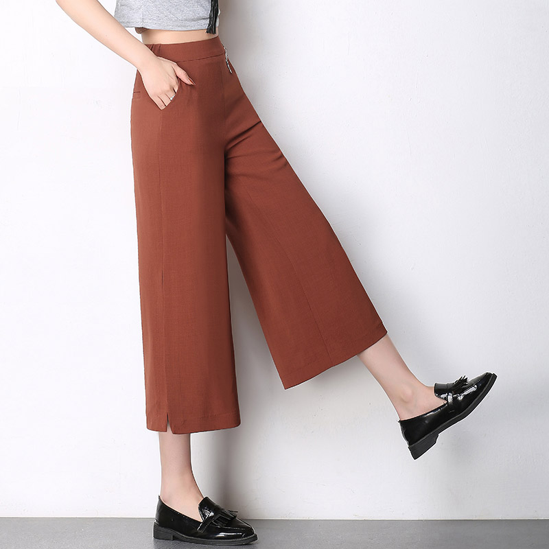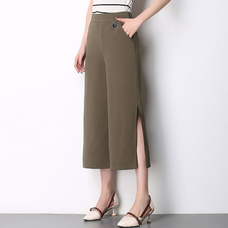 / 夏裝新款韓版薄款百搭九分褲大碼寬松高腰胖mm開叉闊腿褲女潮