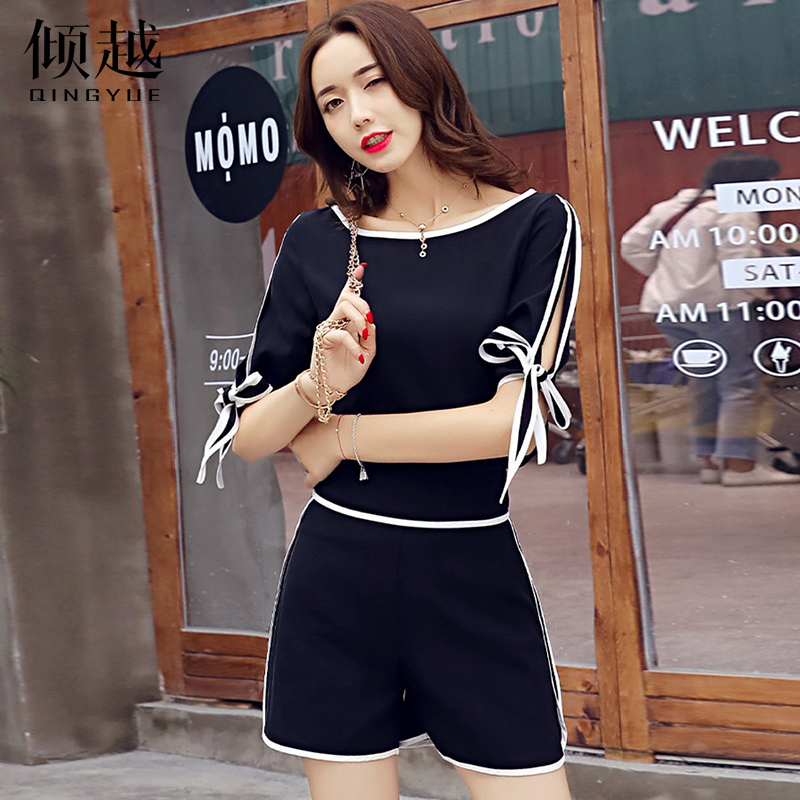 2017夏季新款韓版短袖兩件套休閑時尚夏裝短褲套裝氣質小香風女裝