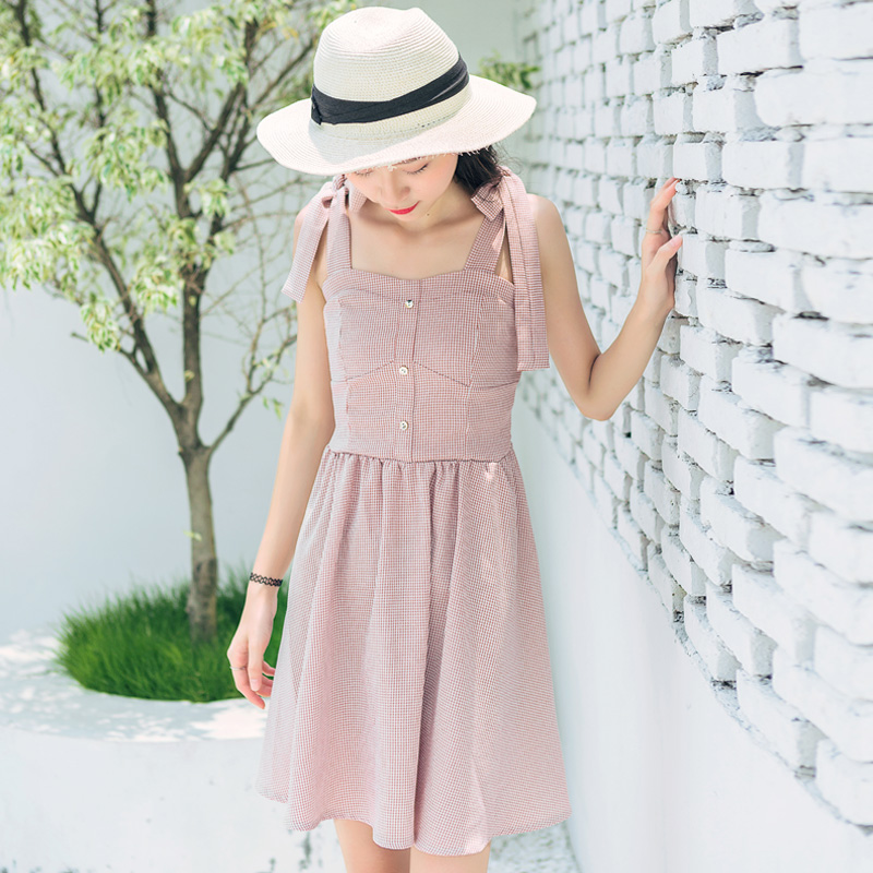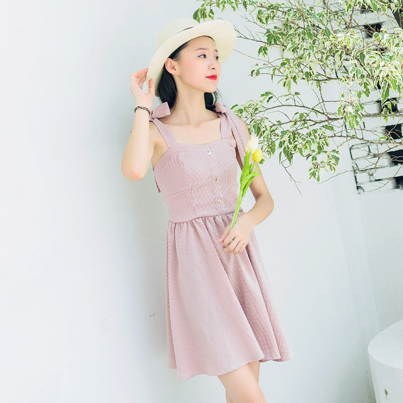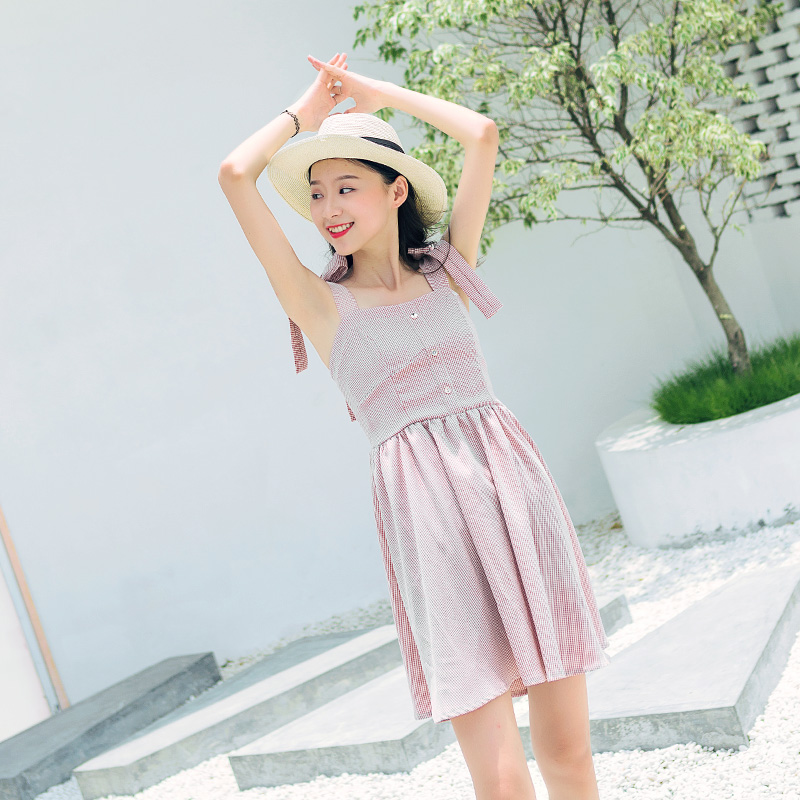 肩上綁帶式的設計,增加整體的甜美度
