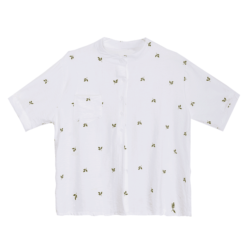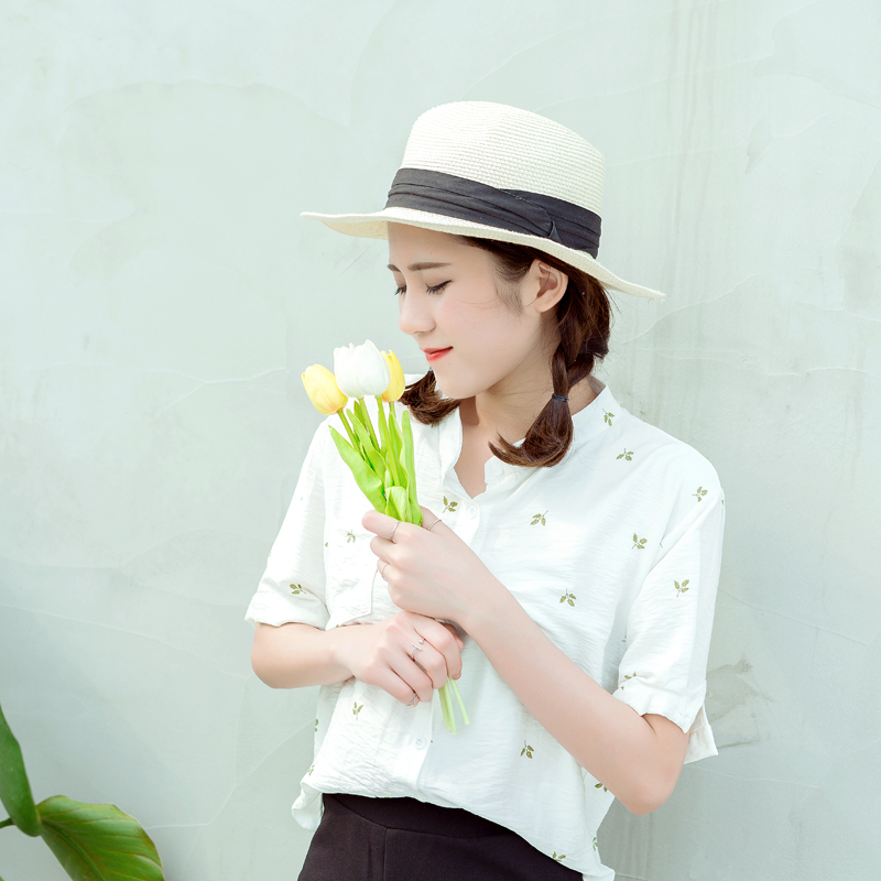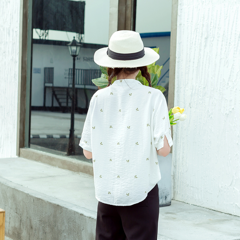 / 夏裝新款女裝潮韓版短袖花朵刺繡雪紡衫白色寬松學生開衫上衣