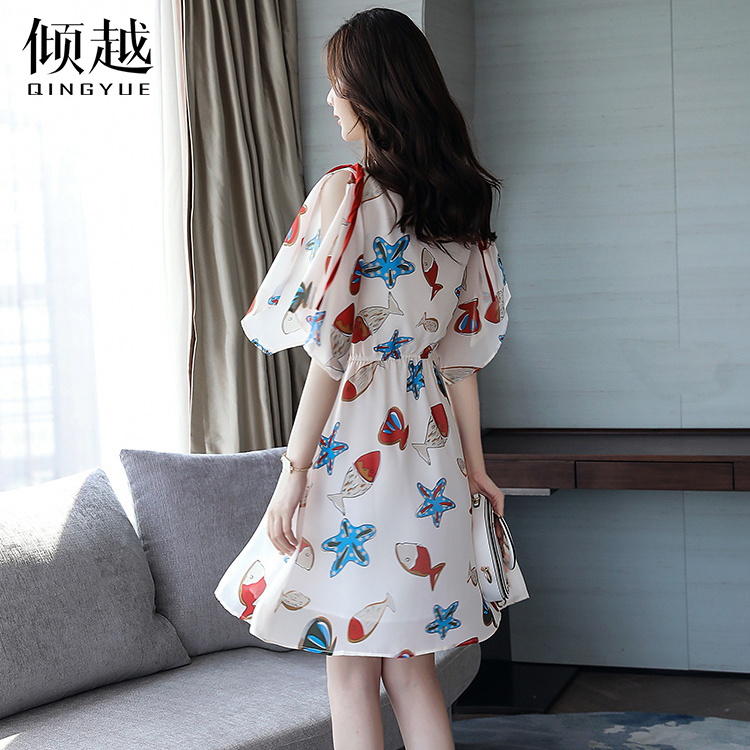/ 2017夏季新款收腰顯瘦印花雪紡連衣裙女夏中長款海邊度假沙灘裙子
