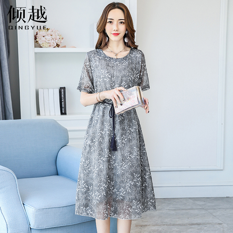 / 傾越連衣裙女夏2017新款韓版寬松顯瘦氣質中長款雪紡印花a字裙子