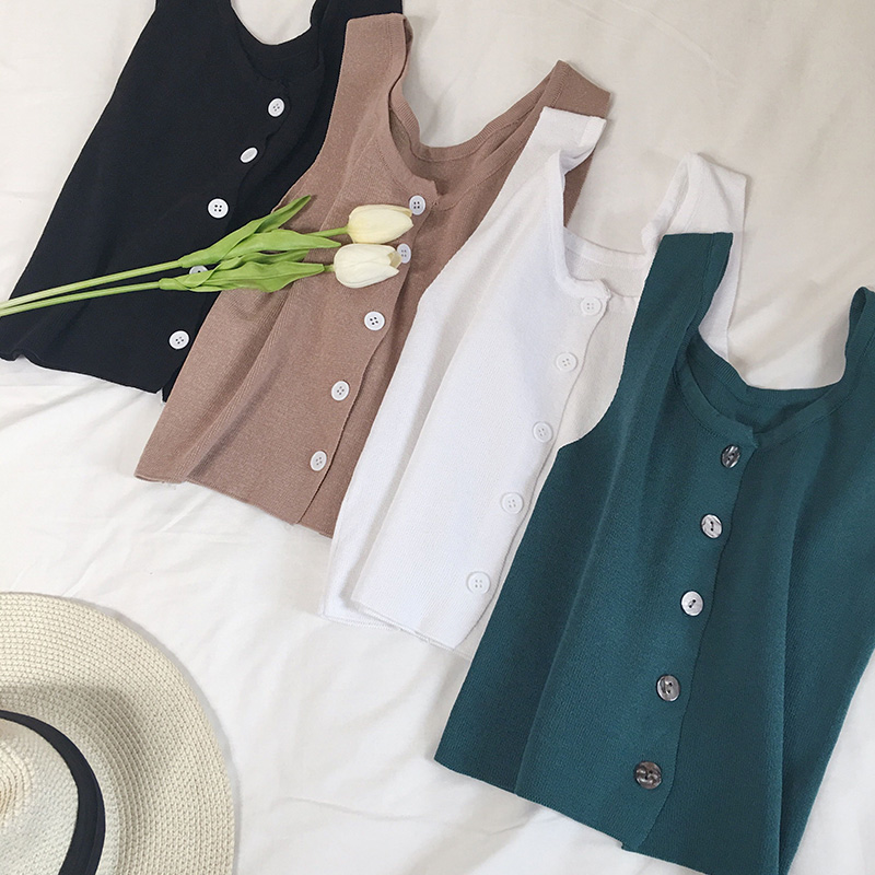 / 夏季新款女裝上衣韓版修身簡約吊帶背心無袖百搭短款打底衫潮