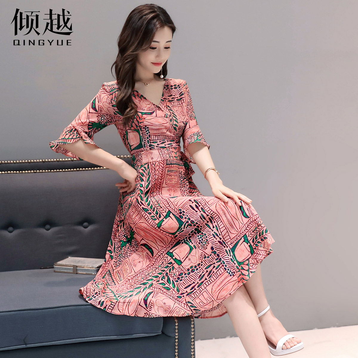 雪紡連衣裙女中長款2017夏季新款時尚氣質韓版修身顯瘦喇叭袖裙子