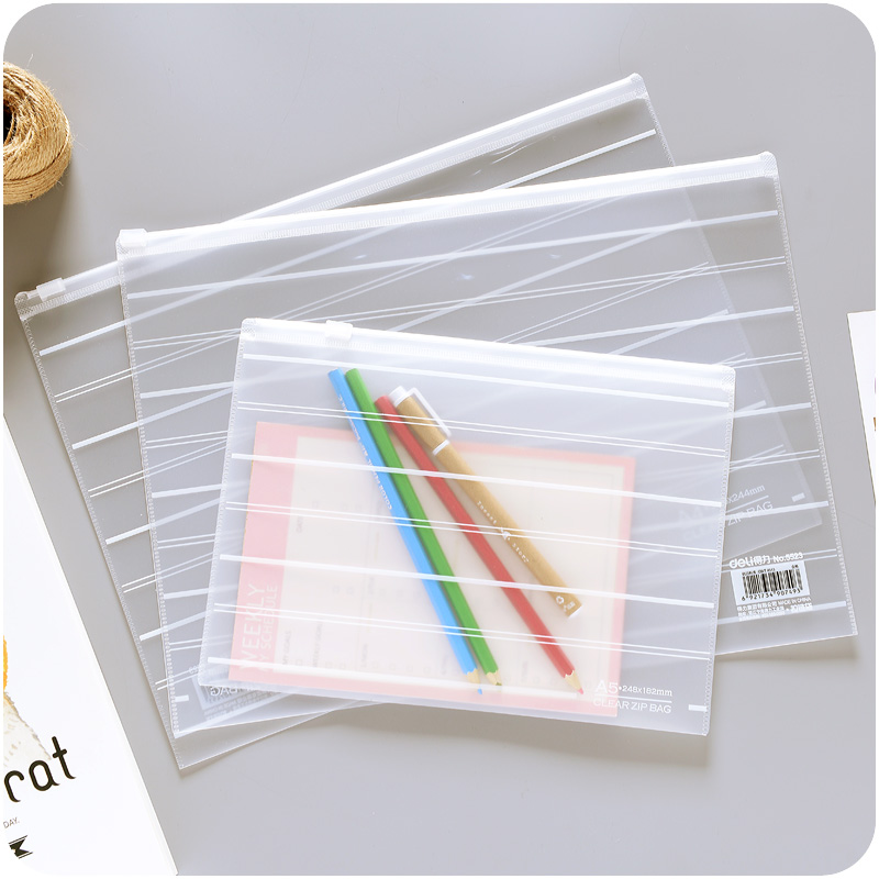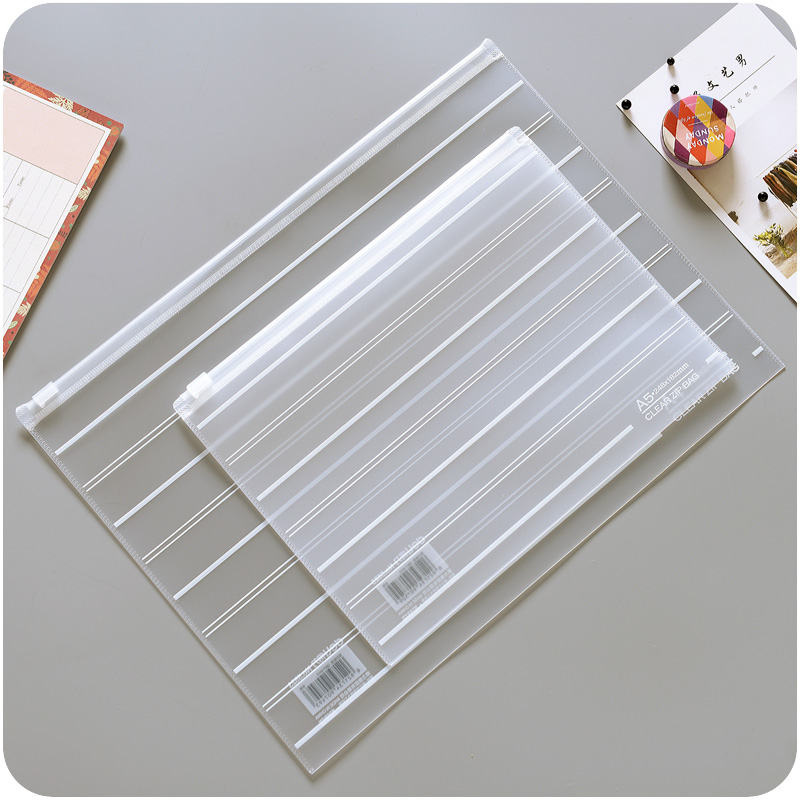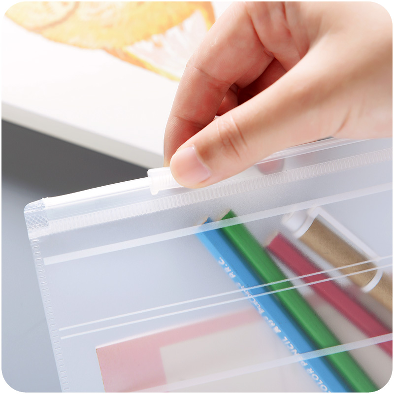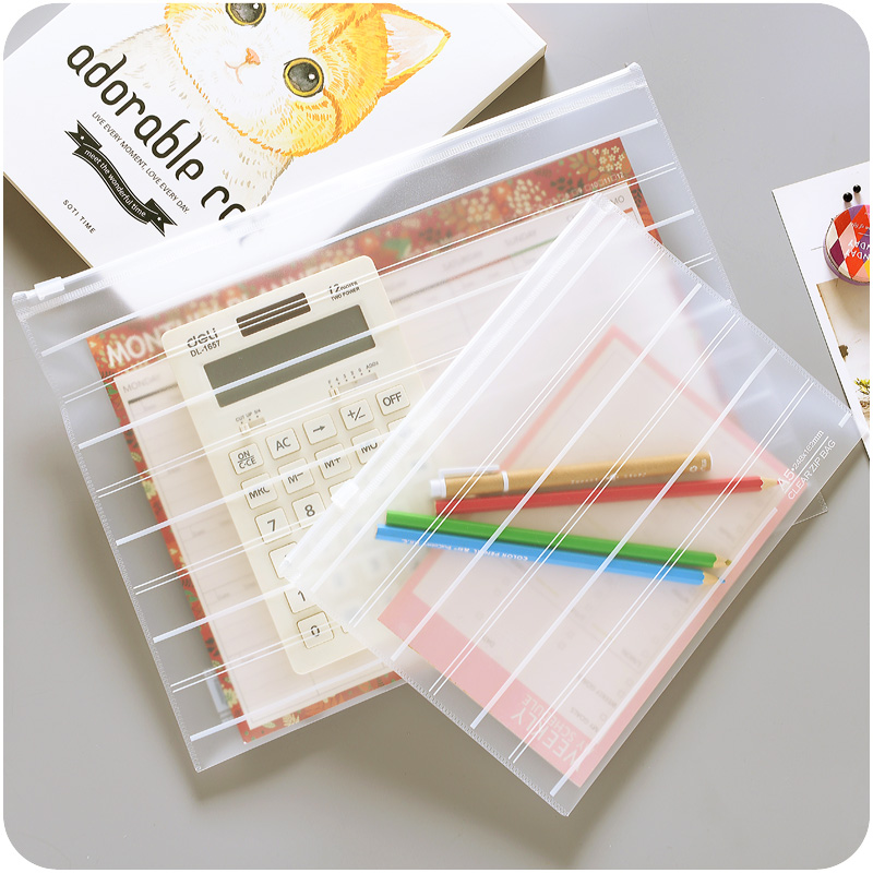 韓國文具拉邊收納袋 環保透明磨砂文件袋大小 票據資料收納檔案袋