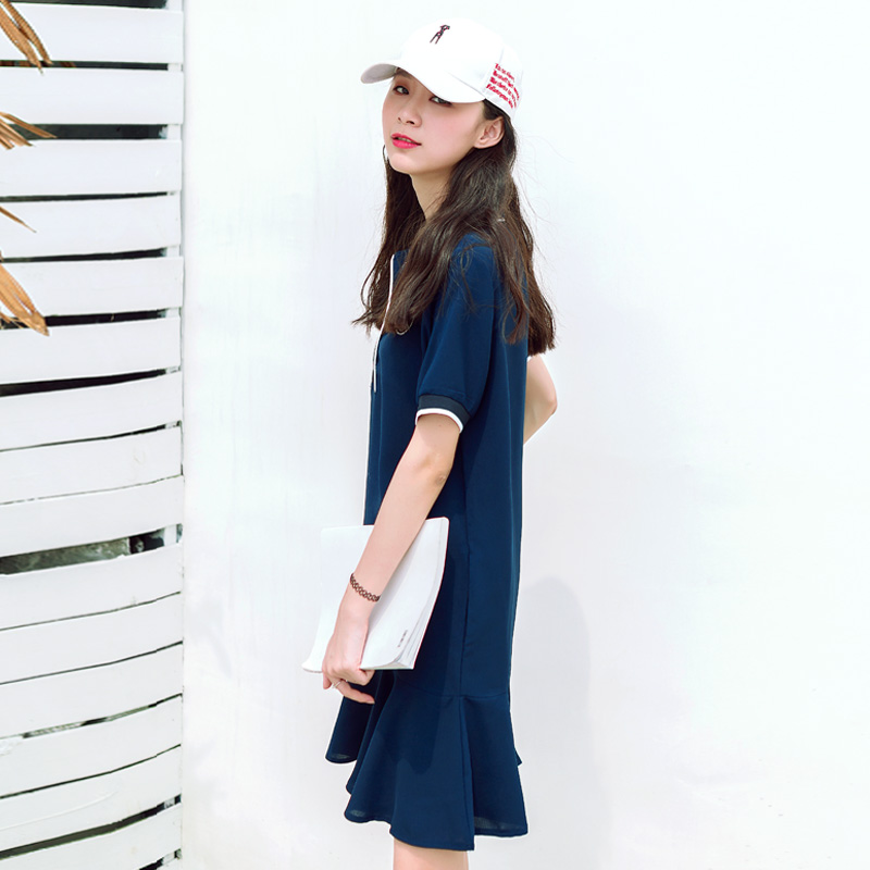 很減齡的一款休閑連衣裙,荷葉裙擺,有點俏皮感