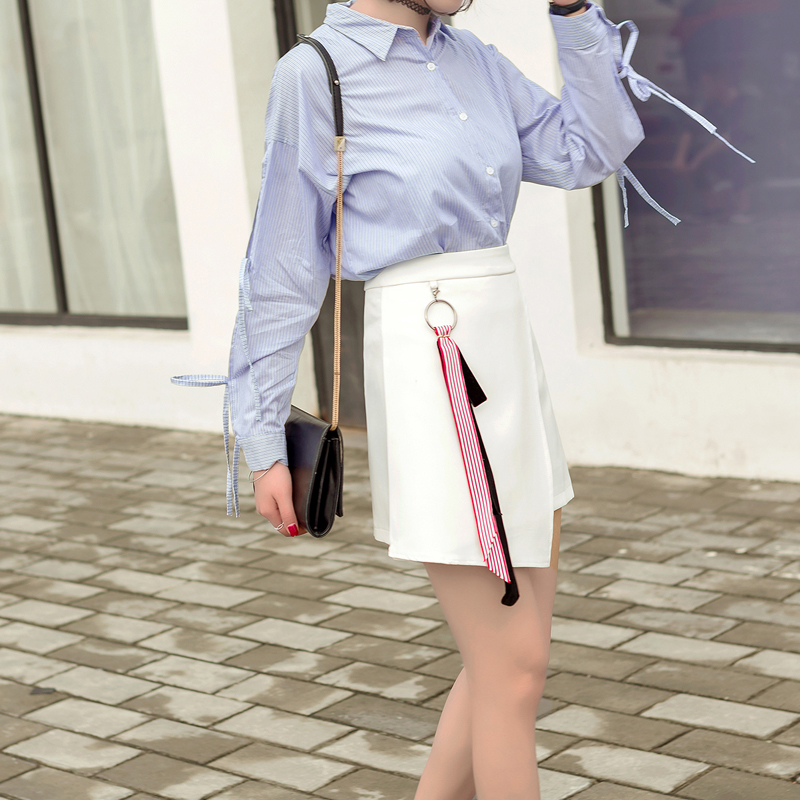 高腰設計的版型,裙子是拼接處理噠,下擺是不規則的