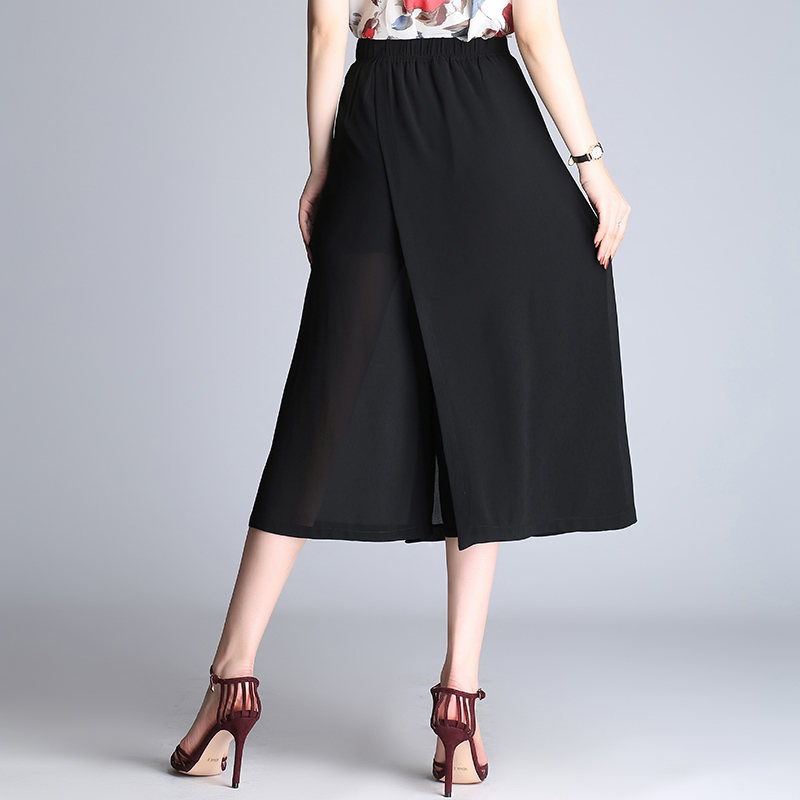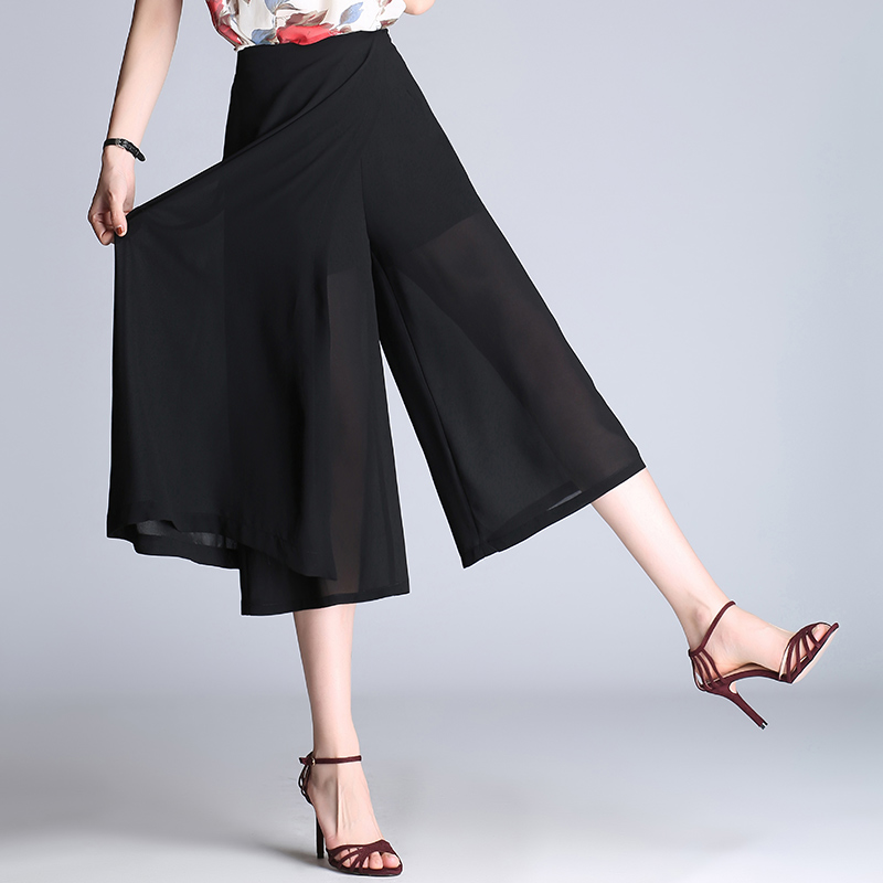 / 雪紡闊腿褲女夏季九分褲高腰寬松不規則甩褲闊腳褲休閑褲薄款裙褲