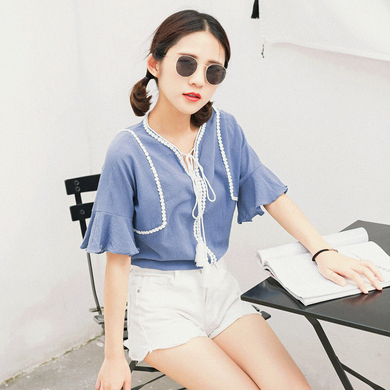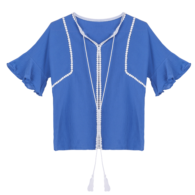 小V領的設計加上系帶流蘇設計,別有一番風味