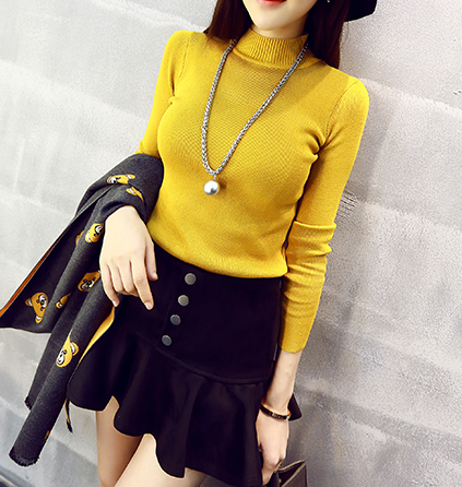 AMJ 韓國半高領打底衫單穿秋冬必備修身顯瘦套頭針織衫純色上衣女