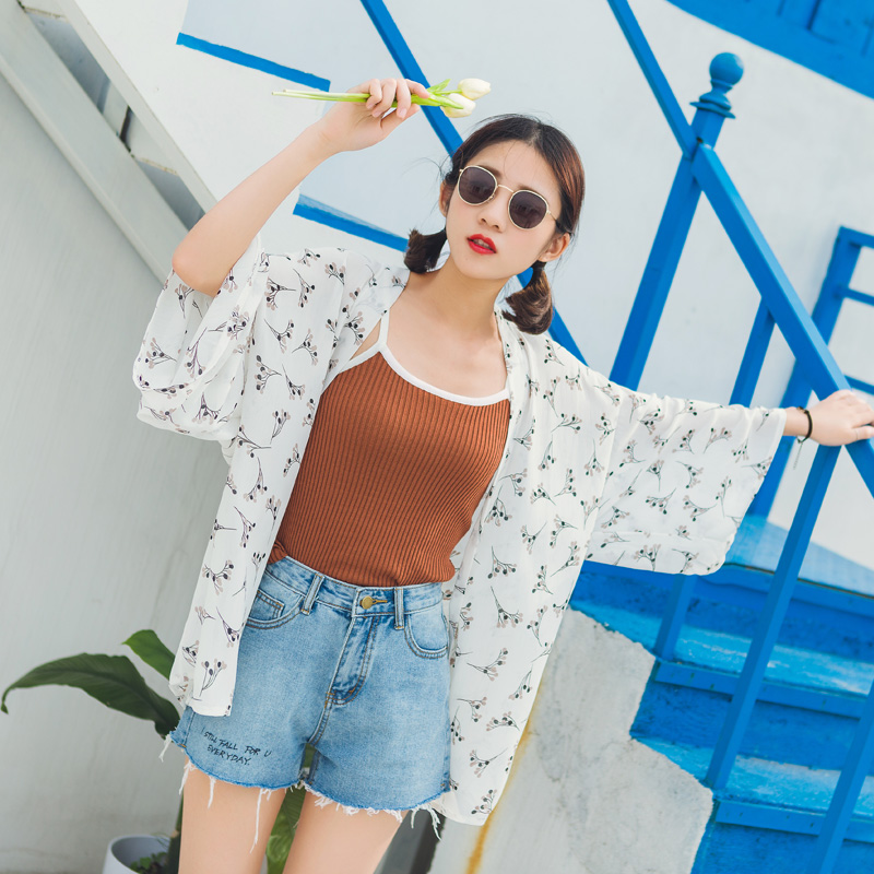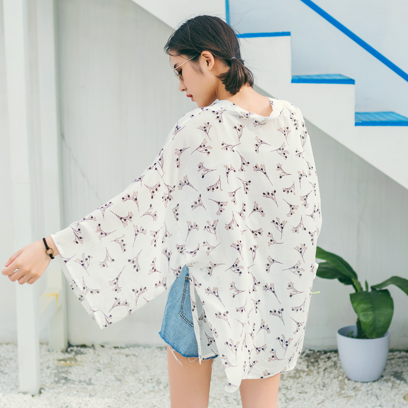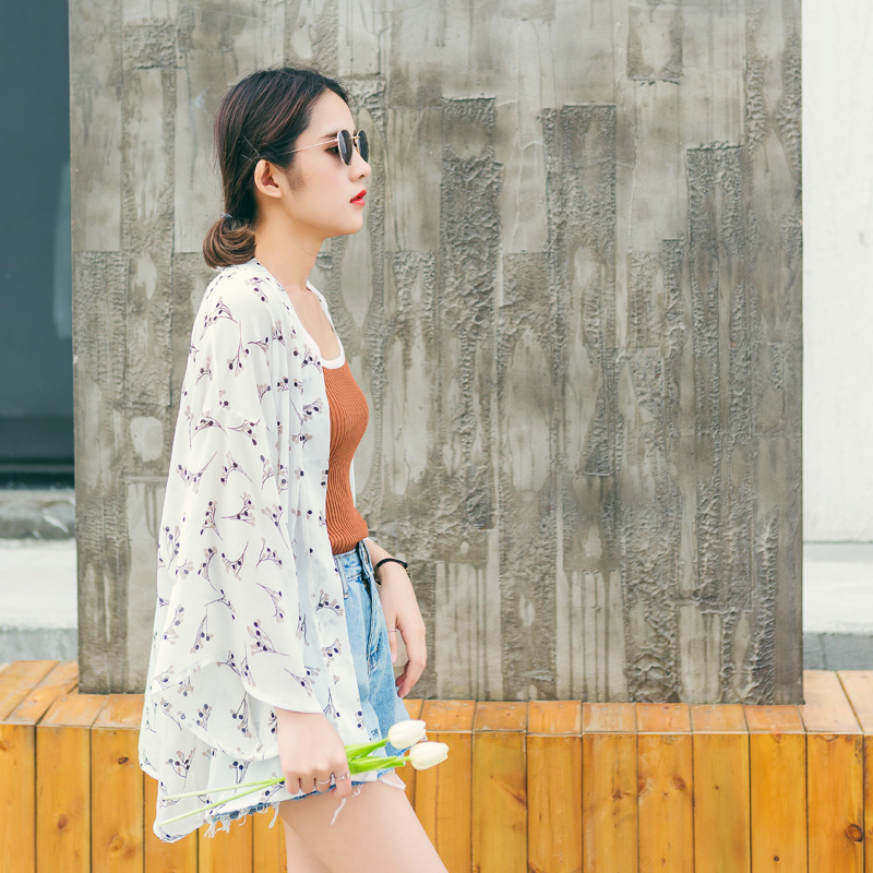 / 防曬衣女中長款沙灘夏新款雪紡開衫百搭印花披肩空調衫薄外套