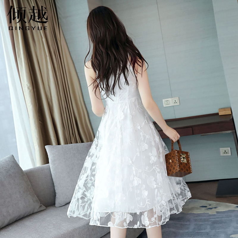 / 傾越2017新款夏裝甜美小清新蕾絲無袖連衣裙雪紡公主沙灘背心裙潮
