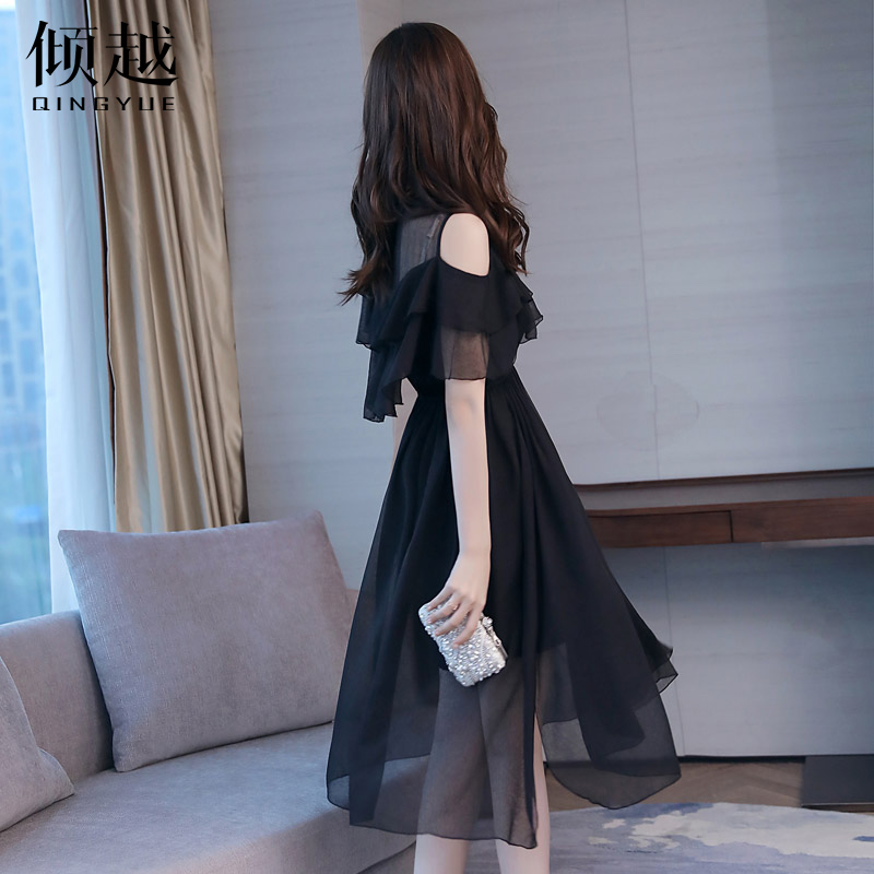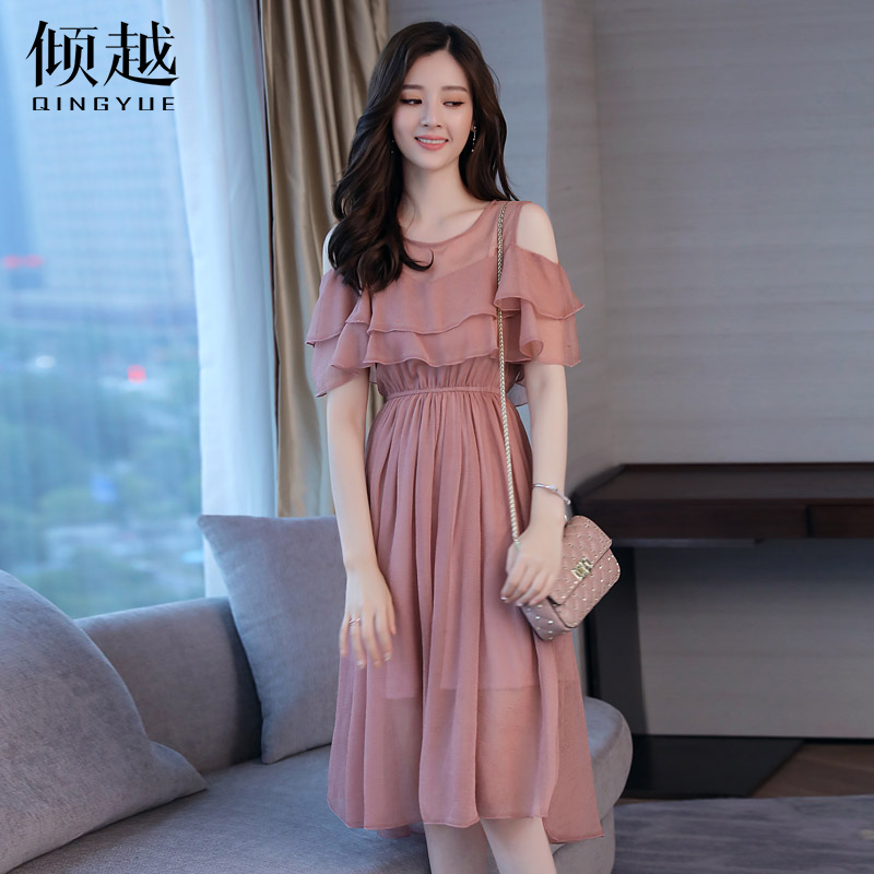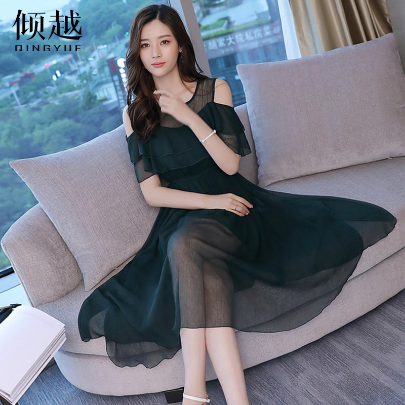 / 歐洲站2017夏季新款女裝韓版時尚露肩雪紡連衣裙仙女氣質顯瘦裙子