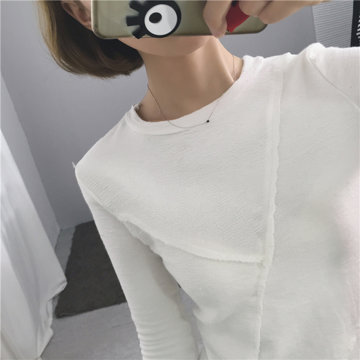 / 秋冬款韓國chic拼接不規則套頭修身彈力純色打底衫上衣T恤女