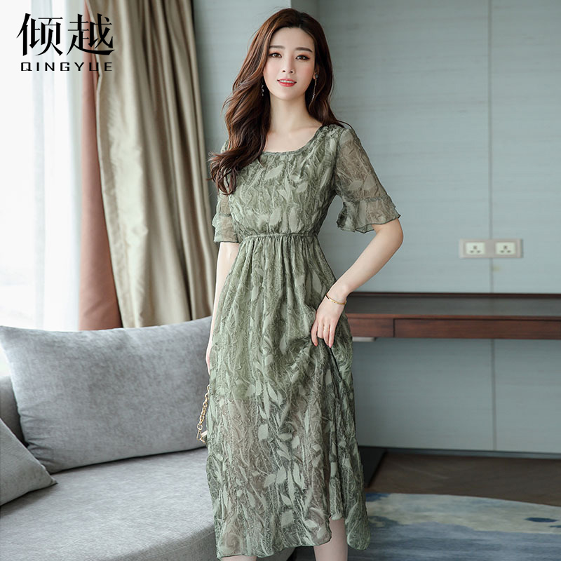 / 夏季短袖連衣裙女韓版修身顯瘦雪紡長裙甜美仙女裙度假裙2017新款