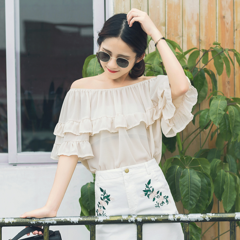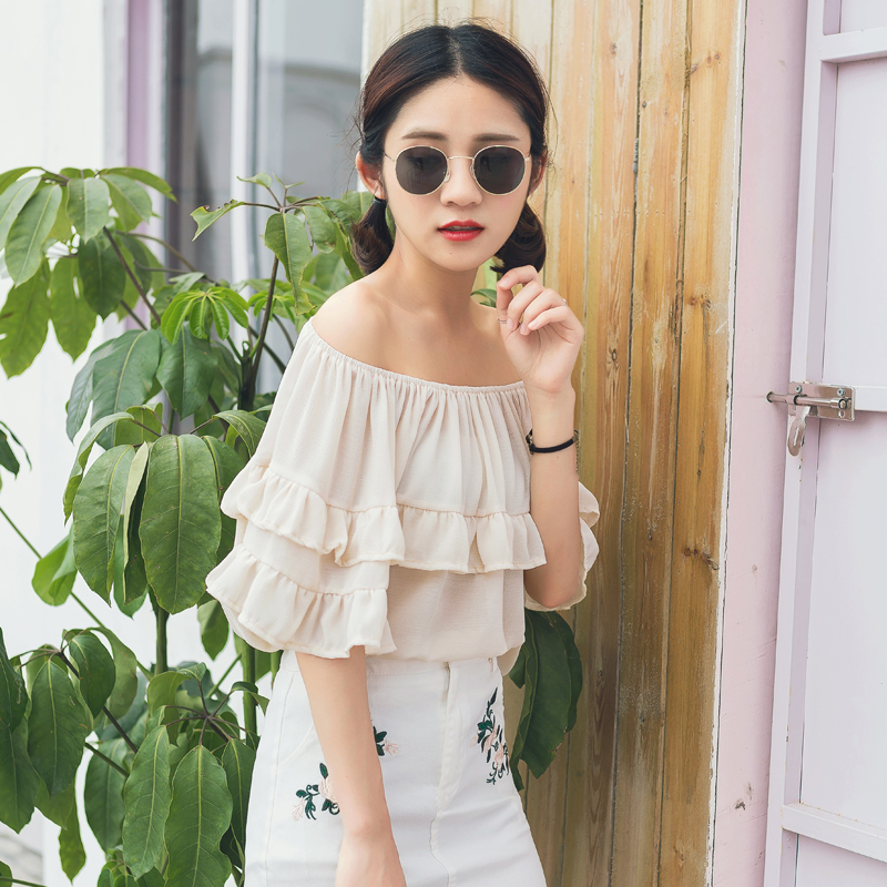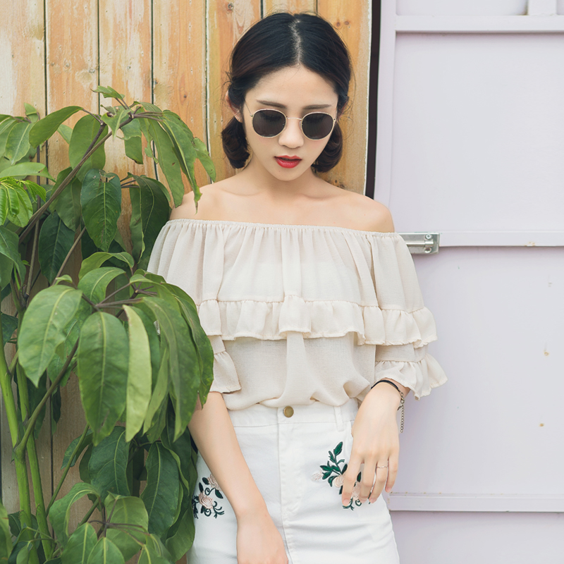 性感一字領,松緊帶設計,也可以收上去穿搭