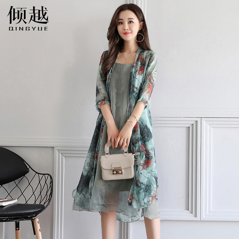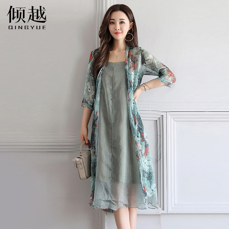 傾越時尚套裝女連衣裙中長款2017夏裝新款韓版顯瘦氣質兩件套裝潮