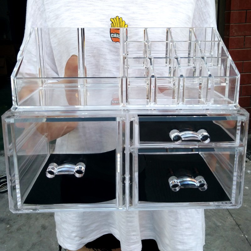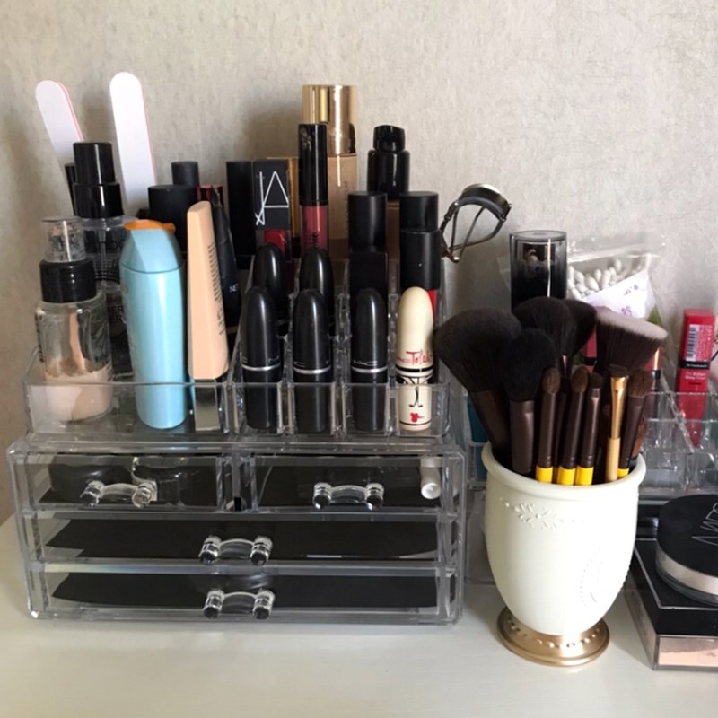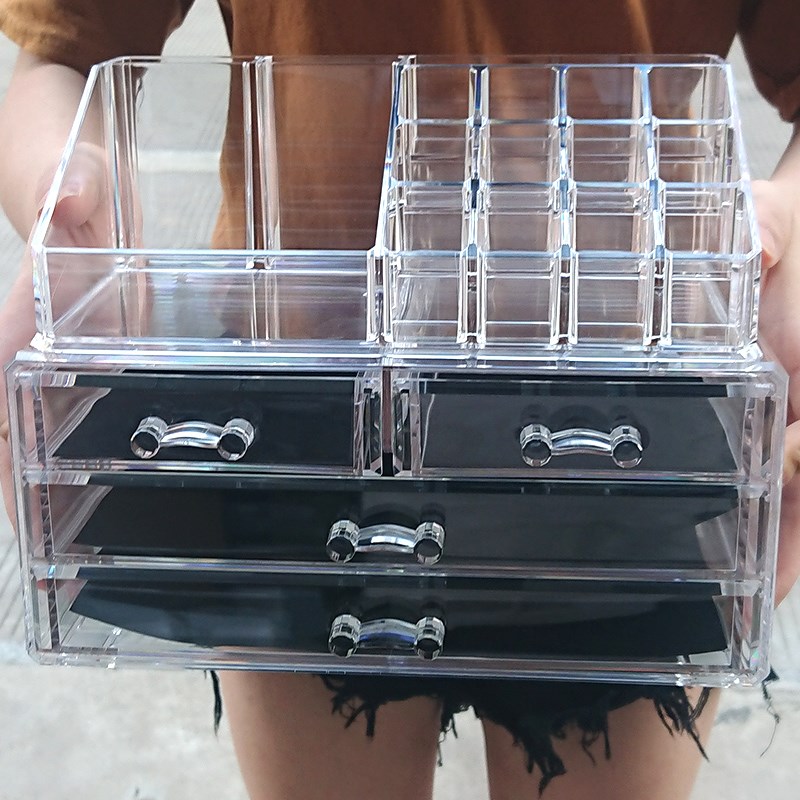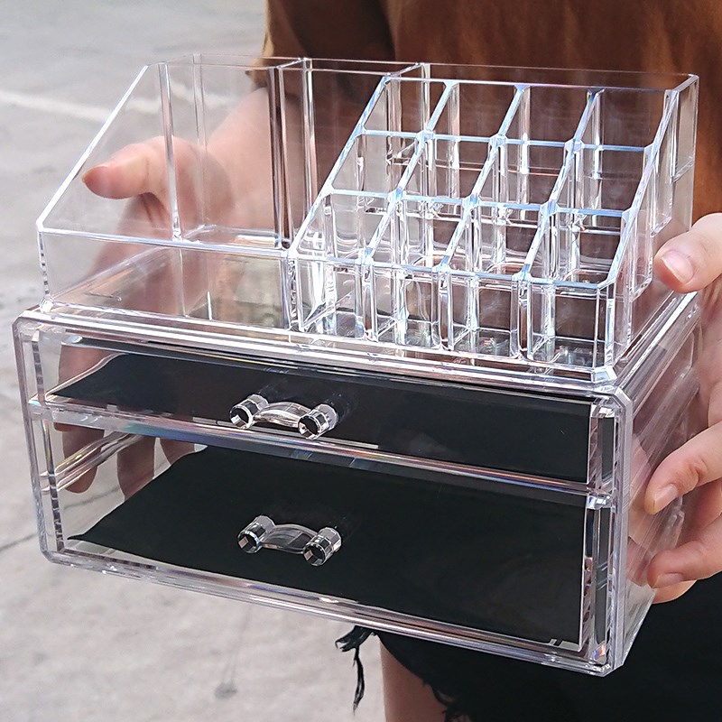 化妝品收納盒梳妝臺透明抽屜式護膚品整理盒亞克力口紅收納架組合