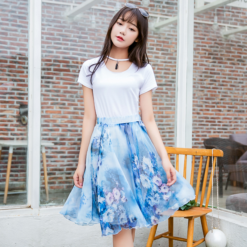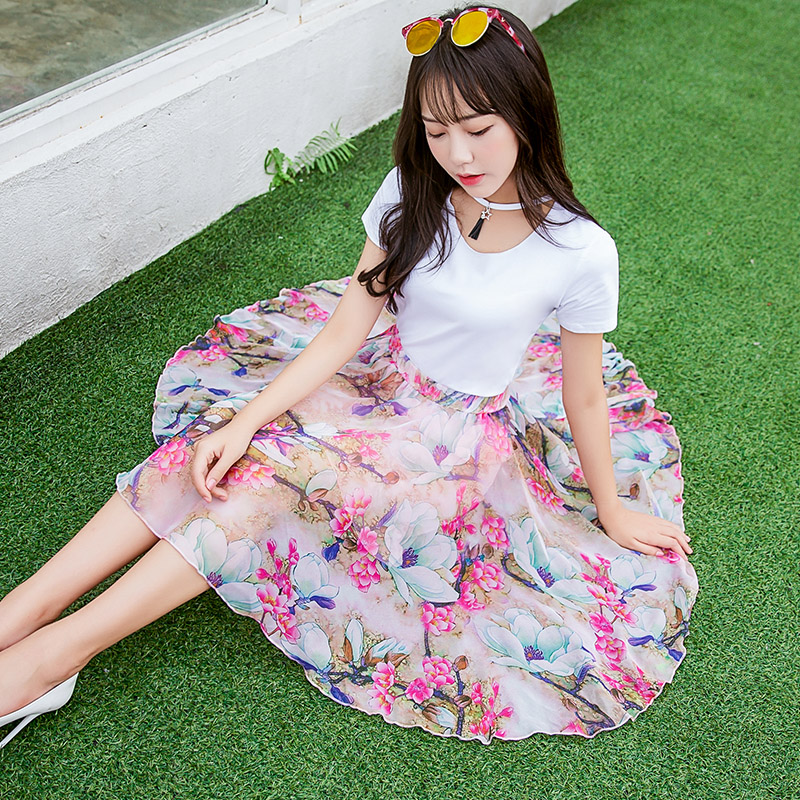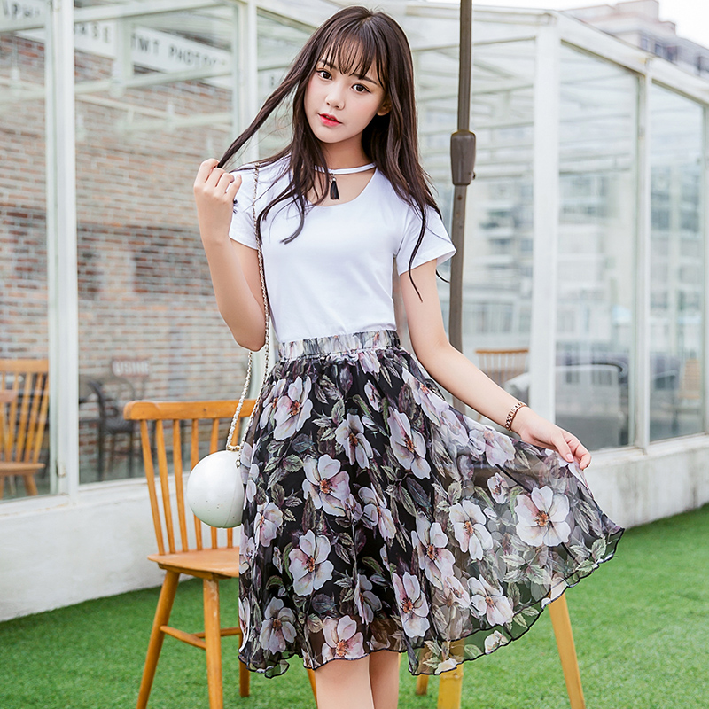 / 套裝短裙夏裝新款上衣+雪紡中裙連衣裙兩件套套裝修身韓版女