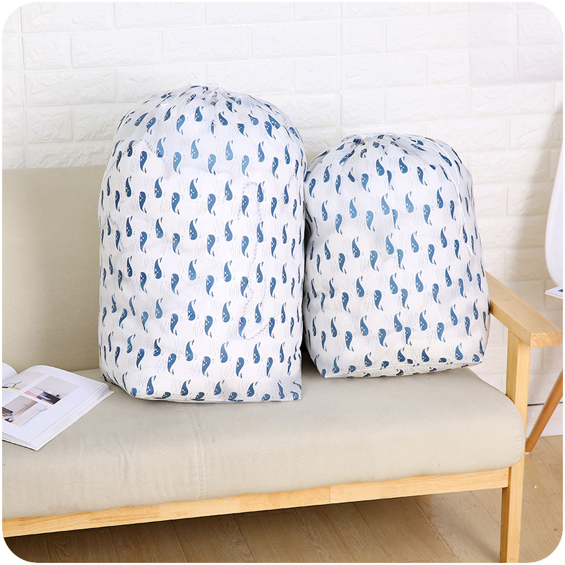 / 家居可愛印花棉被收納袋束口抽繩被子整理袋衣物加厚大容量防塵袋